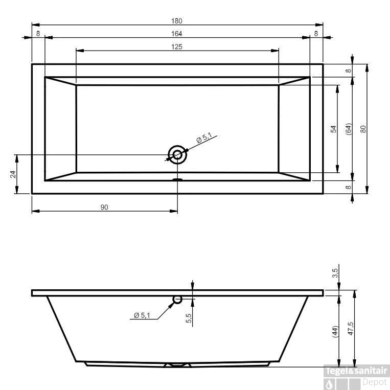 - – Exclusief badpoten en badafvoer