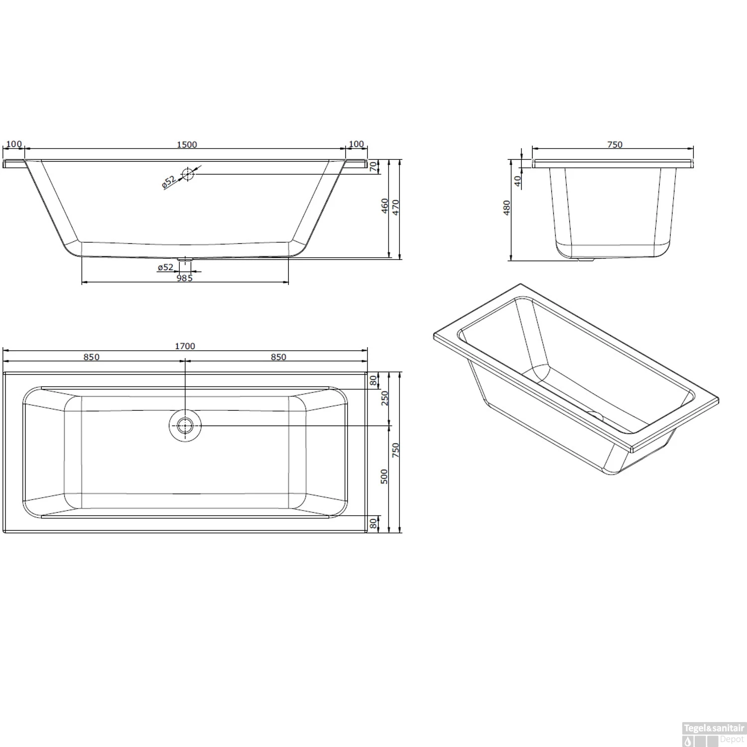 Met dit stijlvolle, ruime bad kunt u altijd genieten van een warm bad na een lange dag. Met zijn afmetingen van 170×75 cm is er plaats genoeg om erin te liggen. Het bad is 50 cm hoog. De rand heeft een dikte van 8 cm. De afvoer heeft een diameter van 5,2 cm. Dit bad wordt geleverd exclusief afvoer en badpoten.