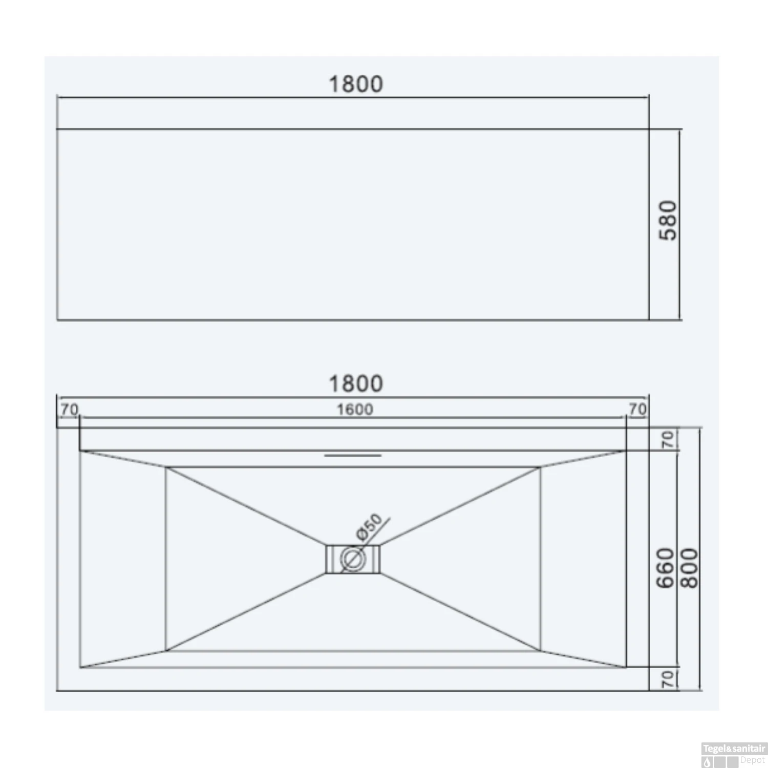 - Diameter afvoergat: 50 mm
