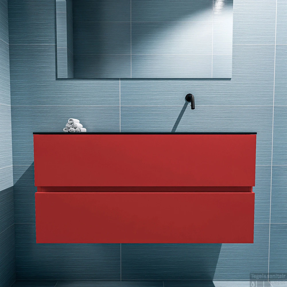 Geef jouw toilet een upgrade met de populaire toiletmeubel serie ADA! Hier zie je de vrijhangende onderkast ADA van 100cm breed met 2 lades in de kleur fire en een solid surface wastafel model LEX in de kleur Urban. De positie van de spoelbak is rechts zonder kraangat. In deze toiletmeubel serie hebben wij al meer dan 600 variaties samengesteld! Daarnaast is maatwerk mogelijk.