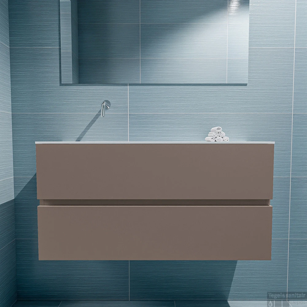 Geef jouw toilet een upgrade met de populaire toiletmeubel serie ADA! Hier zie je de vrijhangende onderkast ADA van 100cm breed met 2 lades in de kleur smoke en een solid surface wastafel model LEX in de kleur Talc. De positie van de spoelbak is links zonder kraangat. In deze toiletmeubel serie hebben wij al meer dan 600 variaties samengesteld! Daarnaast is maatwerk mogelijk.