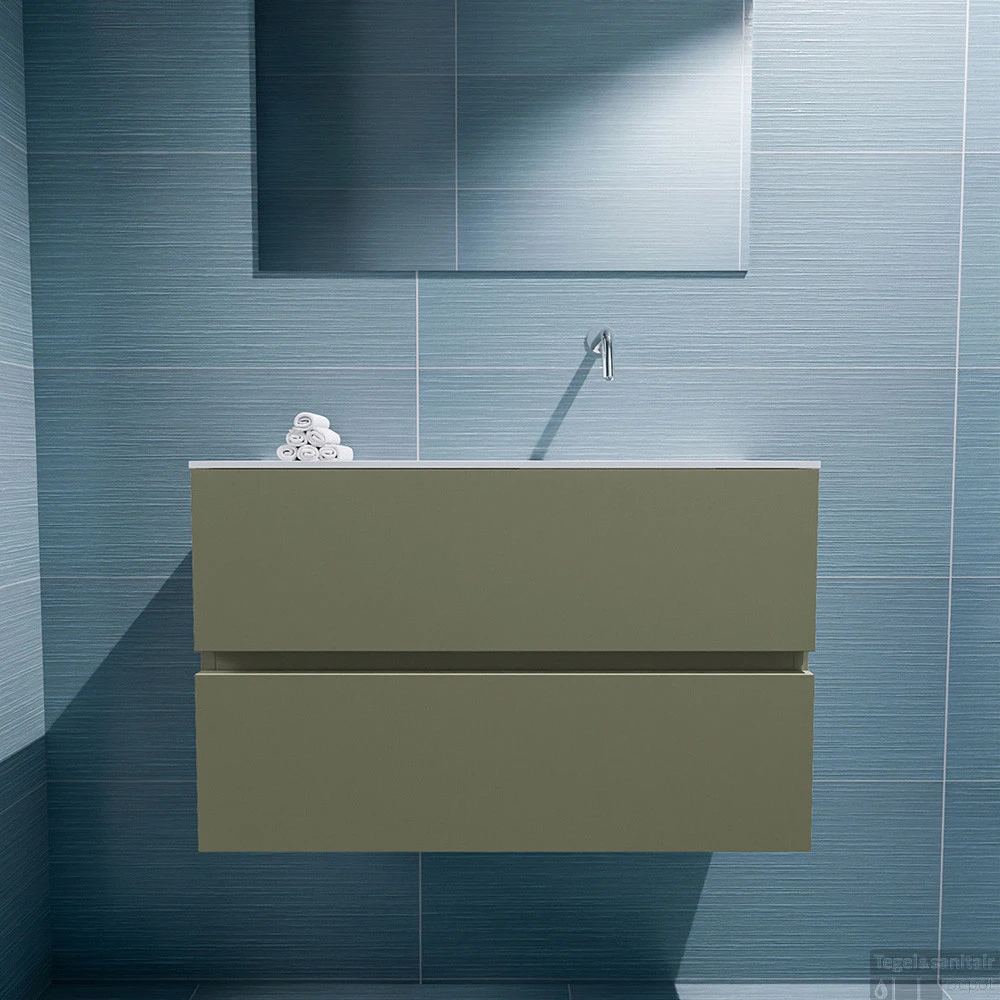 MONDIAZ ADA 80cm Toiletmeubel Army. LEX Wastafel Talc Rechts Zonder Kraangat