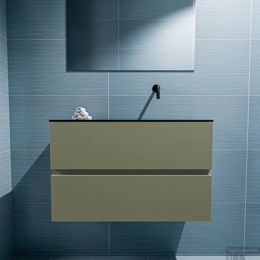 Geef jouw toilet een upgrade met de populaire toiletmeubel serie ADA! Hier zie je de vrijhangende onderkast ADA van 80cm breed met 2 lades in de kleur army en een solid surface wastafel model LEX in de kleur Urban. De positie van de spoelbak is rechts zonder kraangat. In deze toiletmeubel serie hebben wij al meer dan 600 variaties samengesteld! Daarnaast is maatwerk mogelijk.