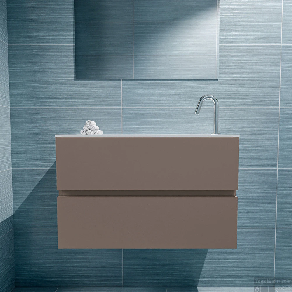 Geef jouw toilet een upgrade met de populaire toiletmeubel serie ADA! Hier zie je de vrijhangende onderkast ADA van 80cm breed met 2 lades in de kleur smoke en een solid surface wastafel model LEX in de kleur Talc. De positie van de spoelbak is rechts 1 kraangat. In deze toiletmeubel serie hebben wij al meer dan 600 variaties samengesteld! Daarnaast is maatwerk mogelijk.
