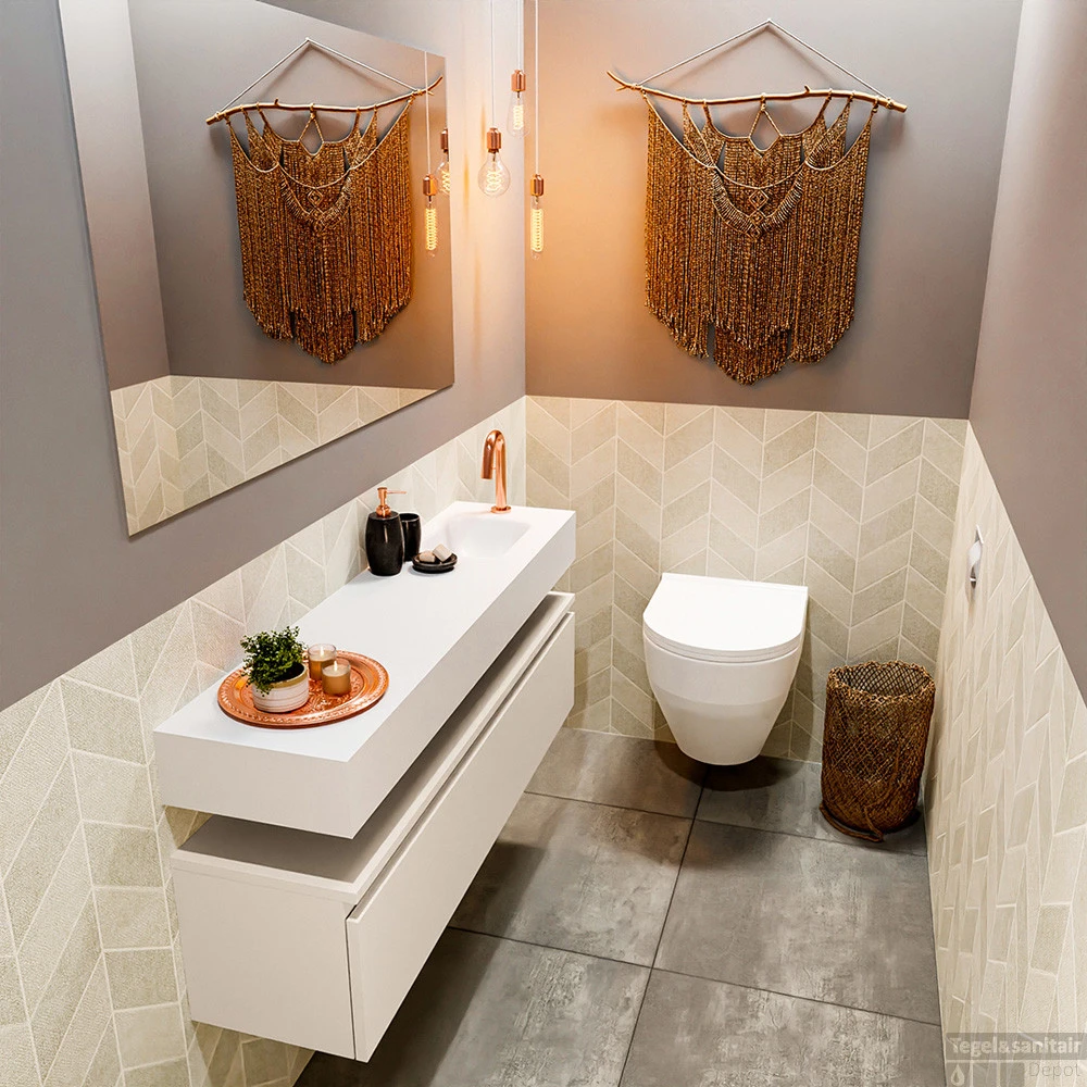 MONDIAZ MONDIAZ ANDOR 120cm toiletmeubel linen. LEX 120cm wastafel talc rechts 1 kraangat