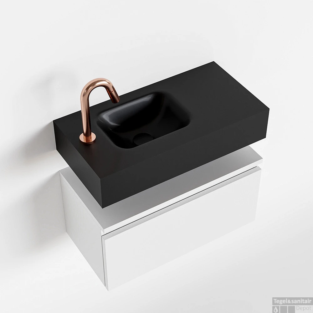 Geen ruimteverlies met deze moderne zwevende toiletmeubel ANDOR! Op de afbeelding zie je de vrijhangende wastafel LEX in 60cm breed in de kleur urban met een bijpassende badmeubel in de kleur talc. De positie van de spoelbak is links 1 kraangat. In deze toiletmeubel serie hebben wij al meer dan 950 variaties samengesteld! Daarnaast is maatwerk mogelijk.