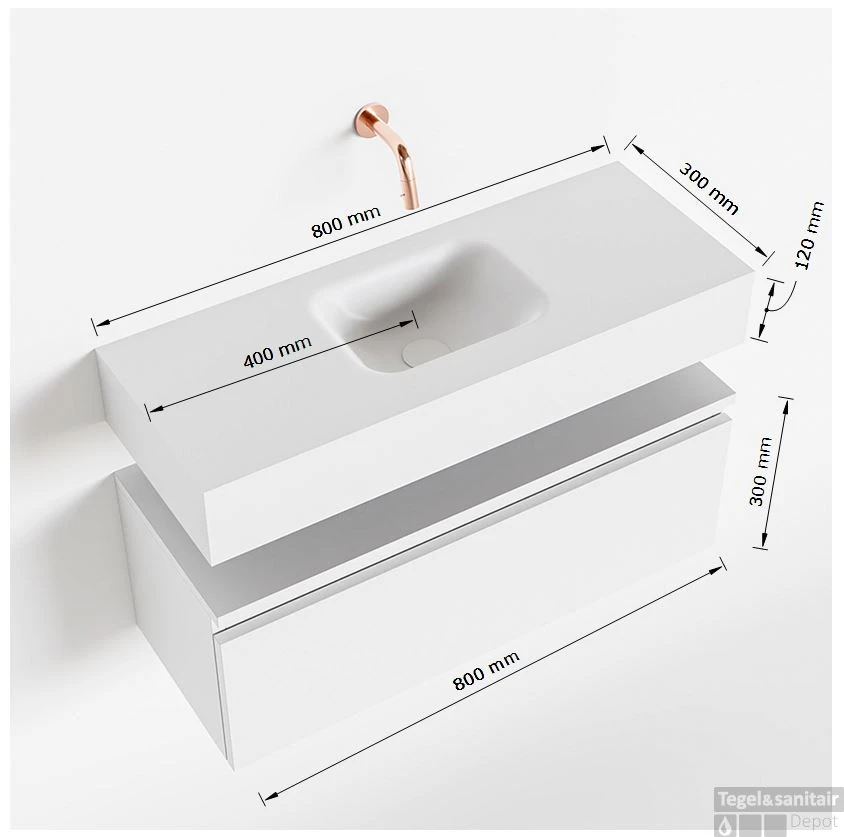 - Positie wasbak: midden