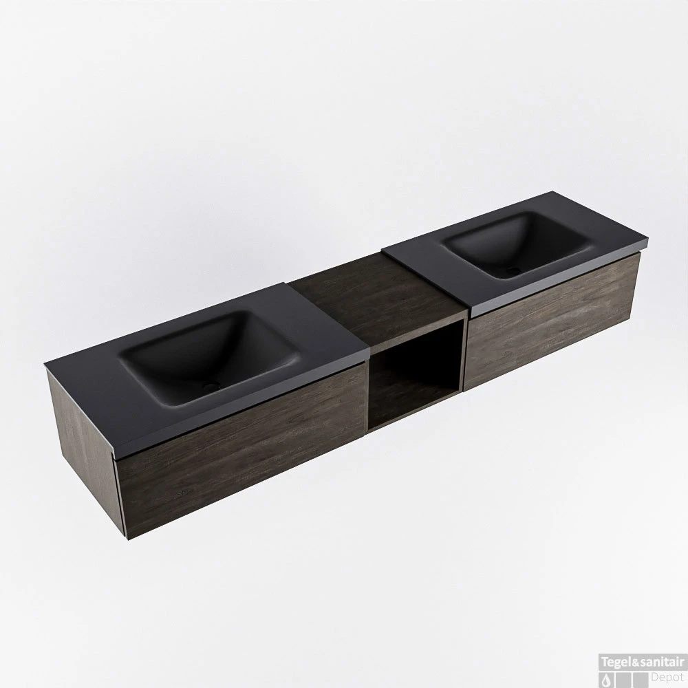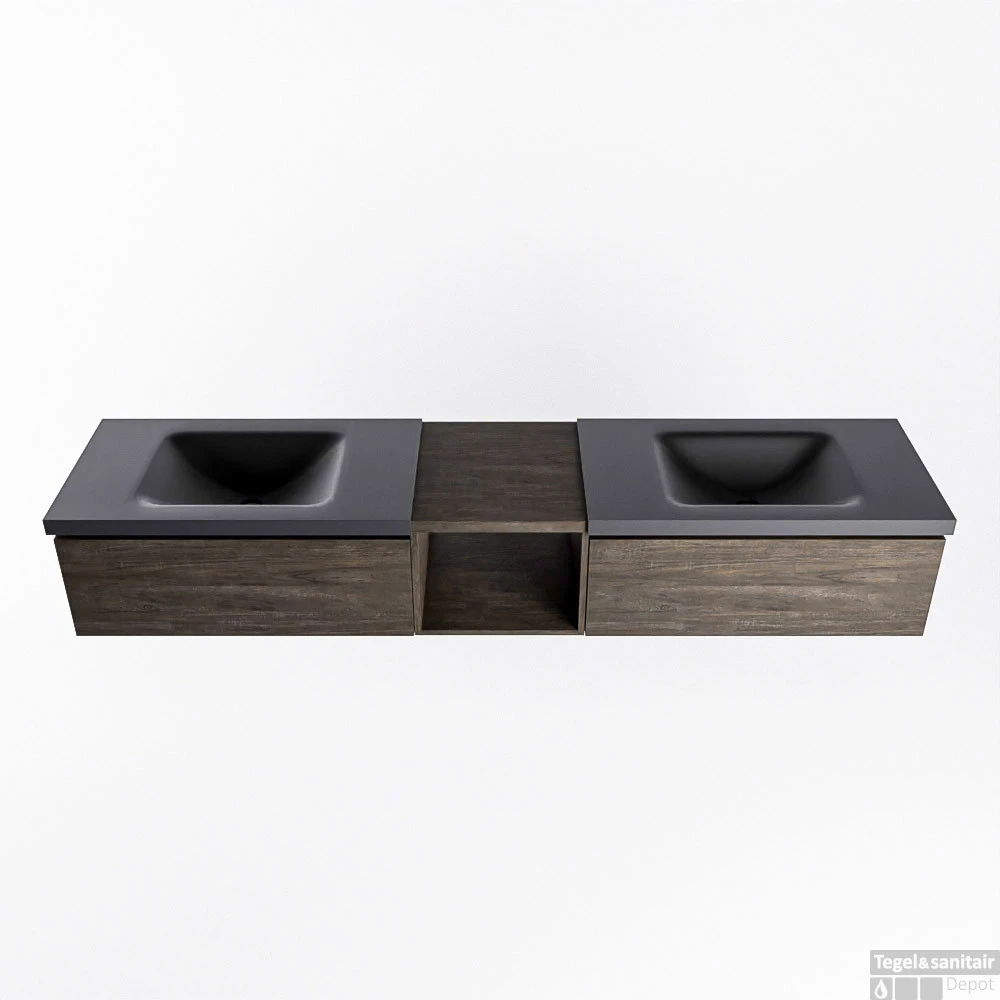Het badmeubel Bukla combineert een Solid Surface wastafel met een top blad in 2 houttinten. U heeft zo een mooie scheiding van het natte gedeelte met daar tussen of ernaast een mooie houttint wat veel sfeer en warmte geeft aan de badkamer. Met het Bukla badkamermeubel kunt u eindeloos veel variaties maken en met al deze mogelijkheden maakt u uw eigen unieke blikvanger.