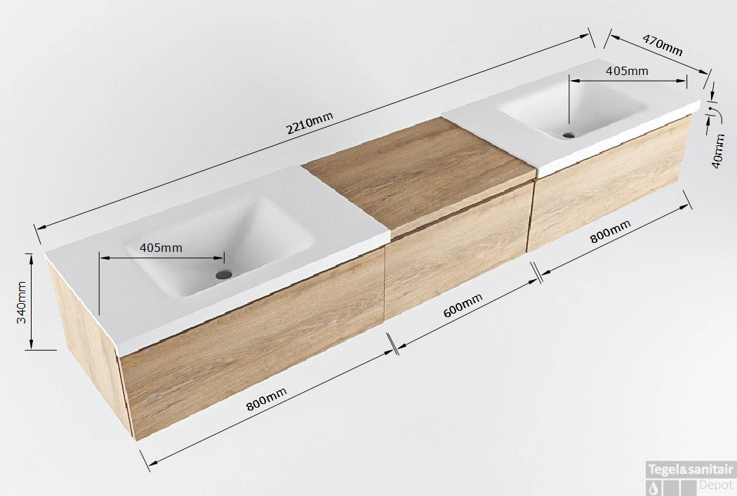 - Diepte wastafel: 46cm