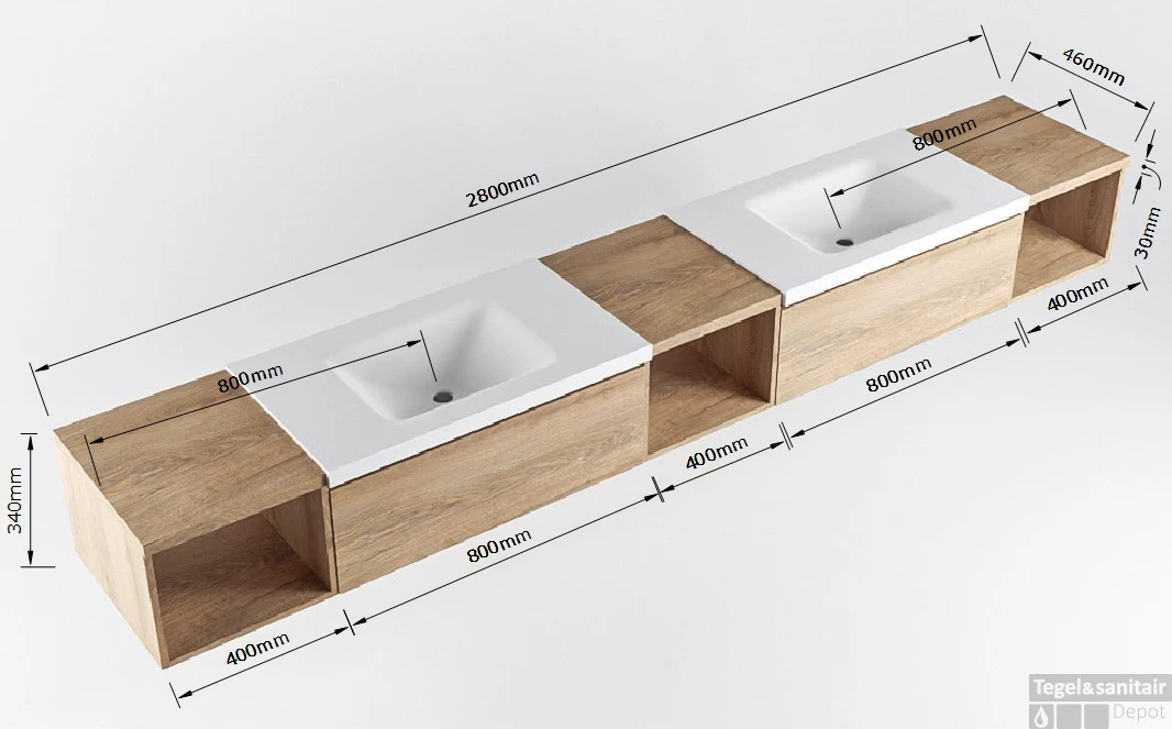 - Diepte wastafel: 46cm