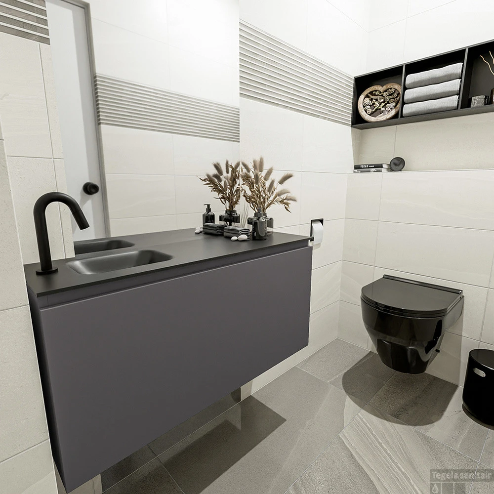 MONDIAZ MONDIAZ OLAN 100cm toiletmeubel dark grey. LEX wastafel urban links 1 kraangat