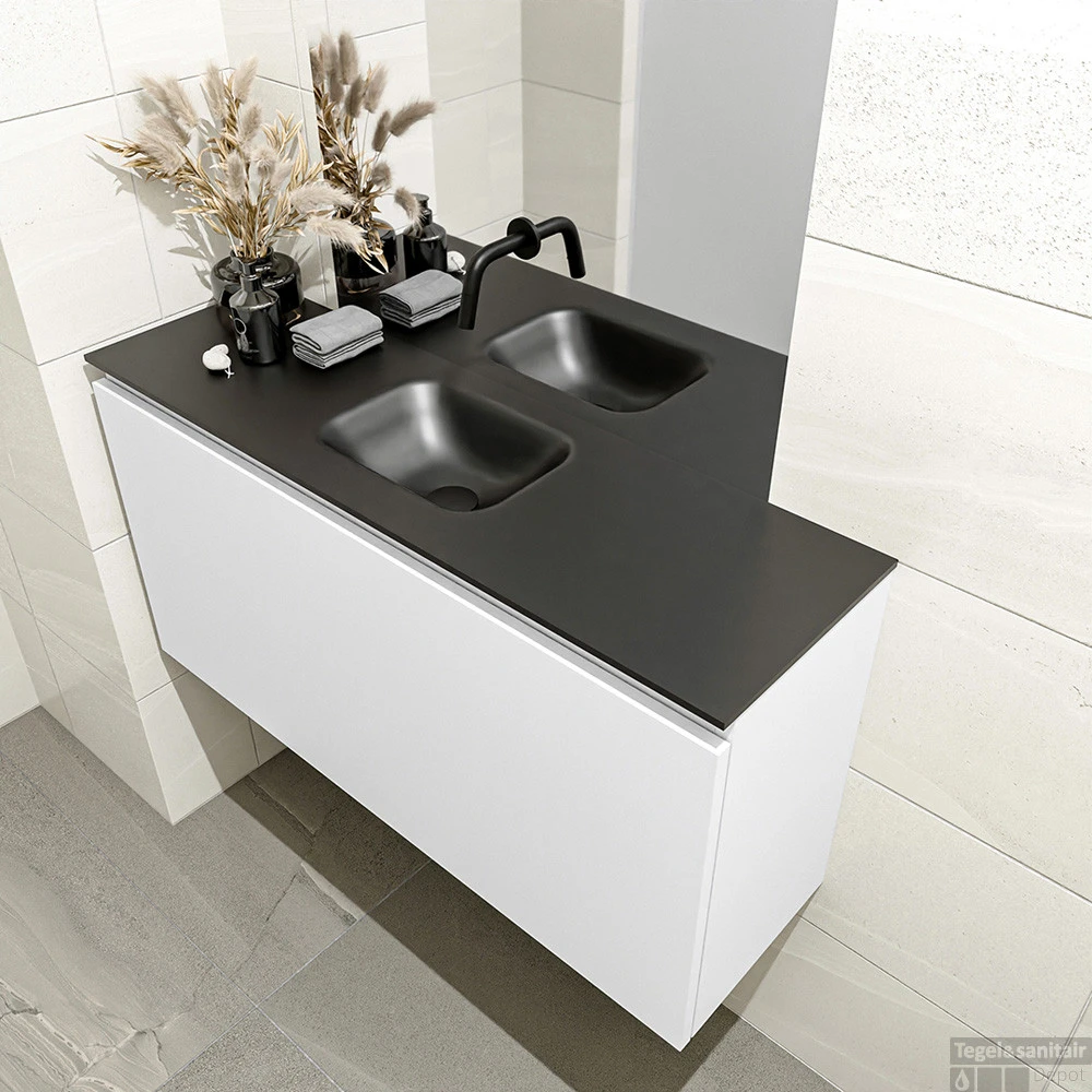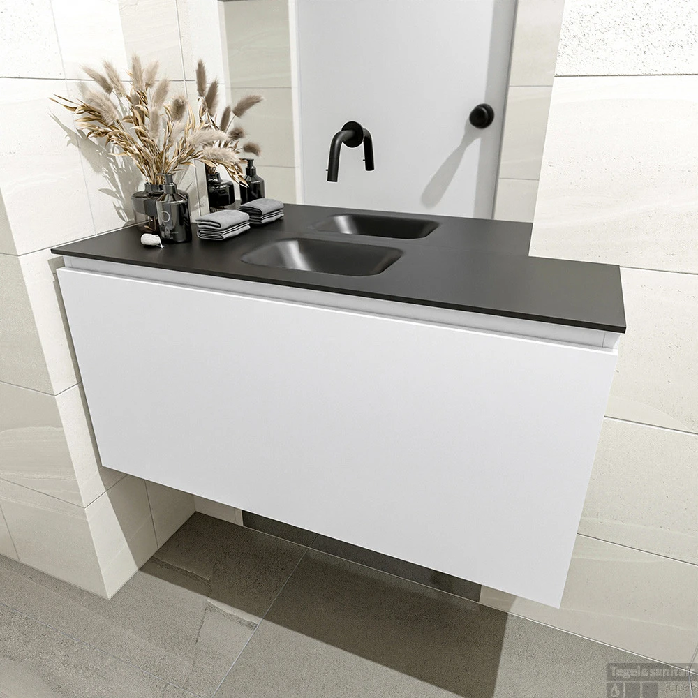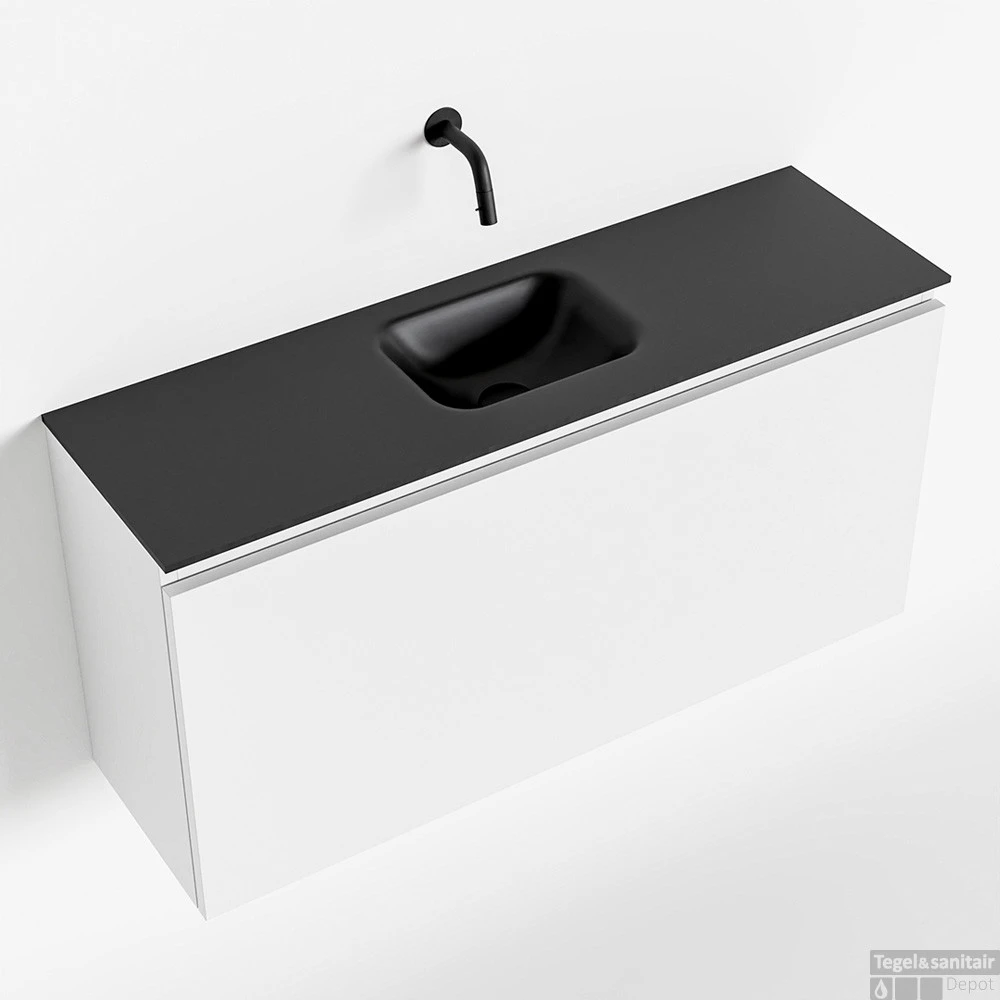 Een mooie combinatie van elegant en rustiek krijg je met het toiletmeubel OLAN! Wat je hier ziet is de vrijhangende onderkast OLAN in 100cm breed met 1 lade in de kleur talc en een solid surface wastafel model LEX in de kleur urban. De positie van de spoelbak is midden zonder kraangat. In deze toiletmeubel serie hebben wij al meer dan 680 variaties samengesteld! Daarnaast is maatwerk mogelijk.