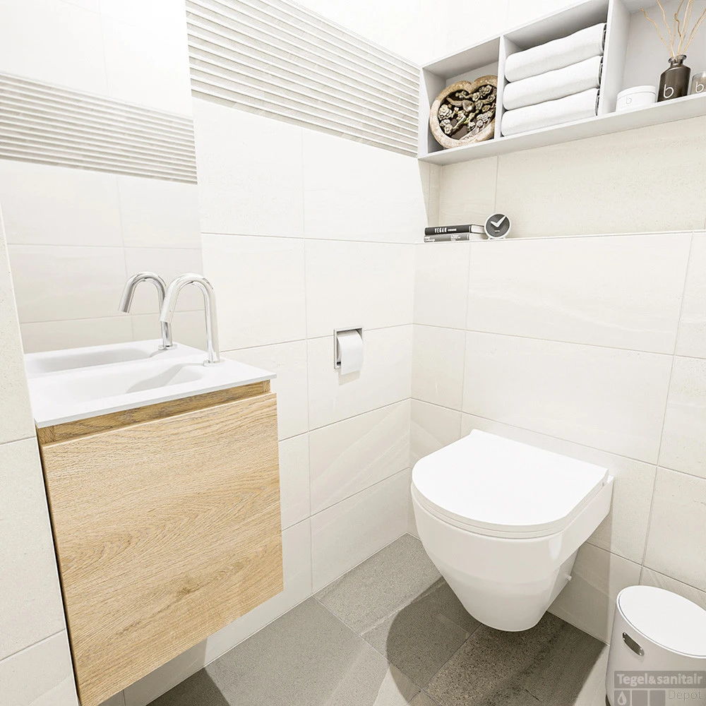 MONDIAZ MONDIAZ OLAN 40cm toiletmeubel washed_oak. LEX wastafel talc links 1 kraangat