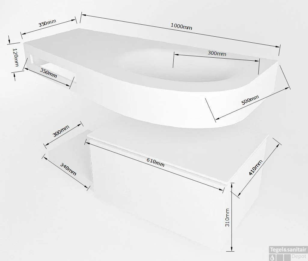 - Diepte wastafel: 50cm