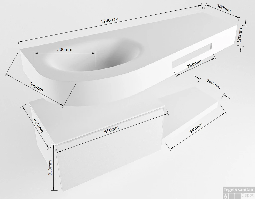 - Diepte wastafel: 50cm