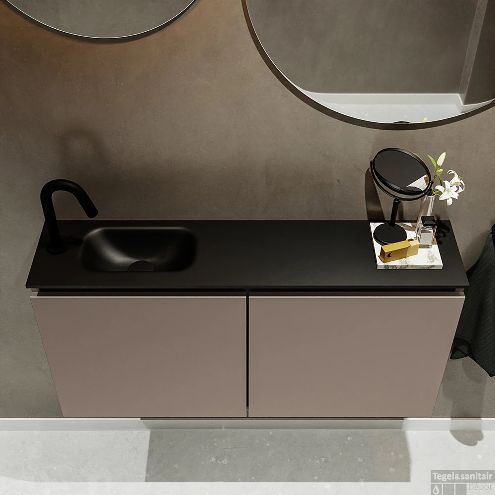 Moderniseer jouw toilet met dit toiletmeubel TURE! Het gaat hier om de vrijhangende onderkast TURE in 100cm breed met 2 deuren in de kleur smoke en een solid surface wastafel model EDEN in de kleur urban. De positie van de spoelbak is links 1 kraangat. In deze toiletmeubel serie hebben wij al meer dan 680 variaties samengesteld! Daarnaast is maatwerk mogelijk.