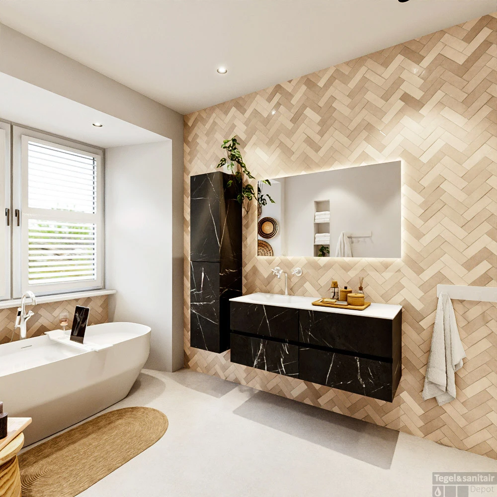 - Het meubel niet direct naast of tegenover een douche staat met douchegordijn en/of zonder douche wand.