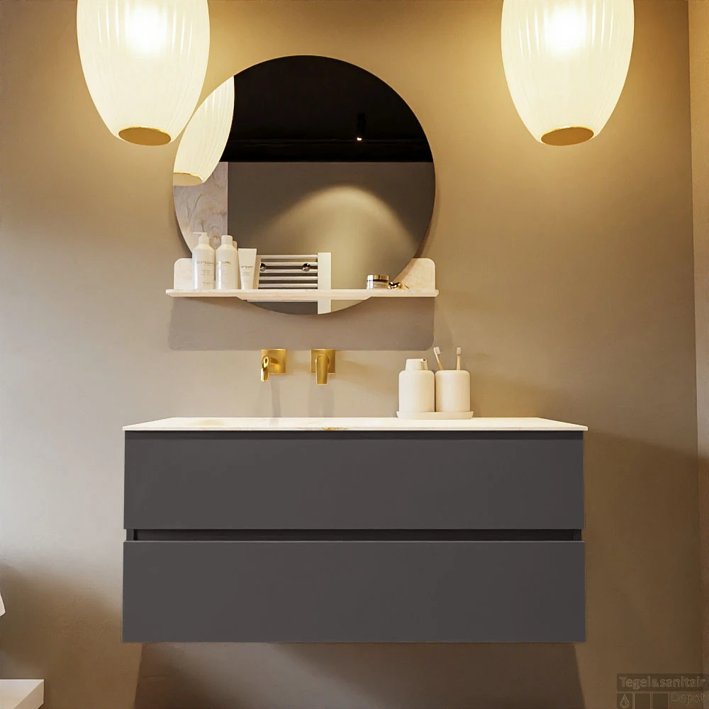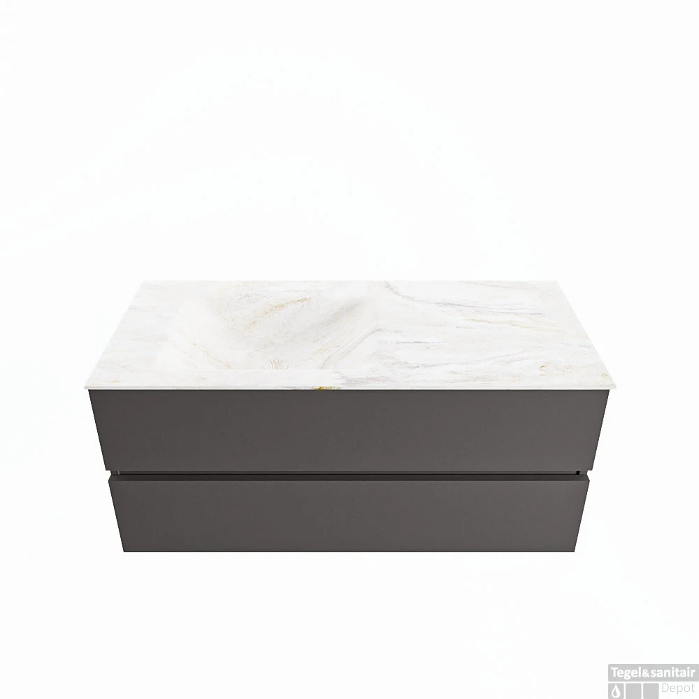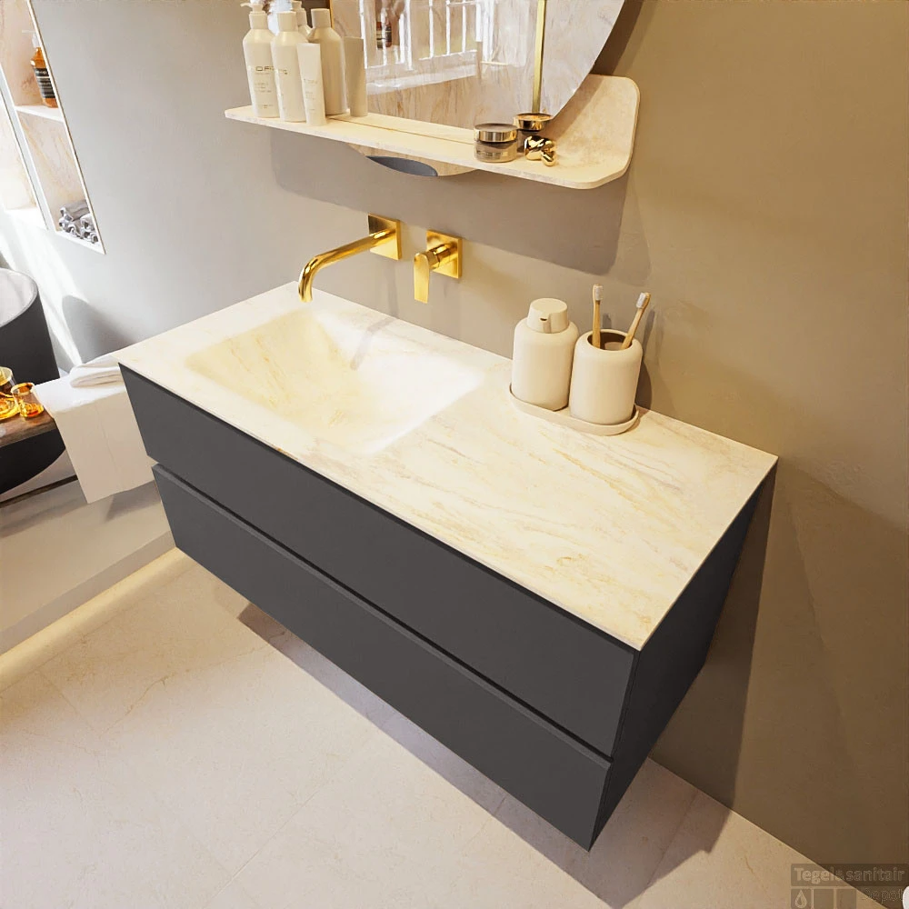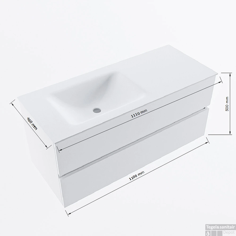 De buitengewone mooie badmeubel set VICA DLUX is een schitterend pronkstuk in uw badkamer. De gemarmerde Solid Surface wastafel van CORIAN heeft een fraaie en tijdloze uitstraling. Door de zachte en natuurlijke vorm van de wastafel, gecombineerd met de tijdloze en prachtige badmeubel onderkast past de VICA-DLUX goed bij de diverse stijlen badkamers. Om uw badkamer compleet te af te stijlen hebben wij ook de nissen en spiegelhouders in dezelfde kleur als de wastafel. Zoals de nissen en spiegel planchetten. De serie VICA DLUX bestaat uit de 2 of 4 laden onderkast VICA gecombineerd met een CORIAN Solid Surface wastafel met marmer structuur. De Solid Surface CORIAN wastafel is in 5 marmer looks verkrijgbaar. Met deze badkamermeubel set heeft u wel die mooie marmeren uitstraling maar tevens ook het gemak en de hygiëne van Solid Surface.
