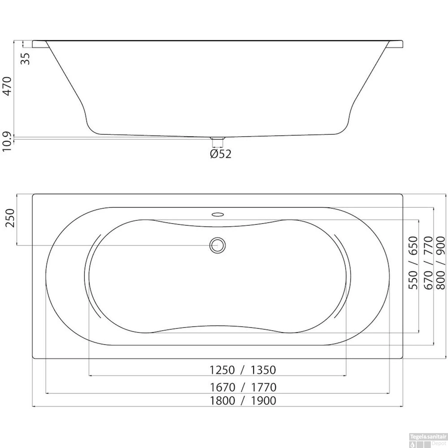 Specificaties Sealskin Ligbad Optimo Duobad 190×90 cm Wit