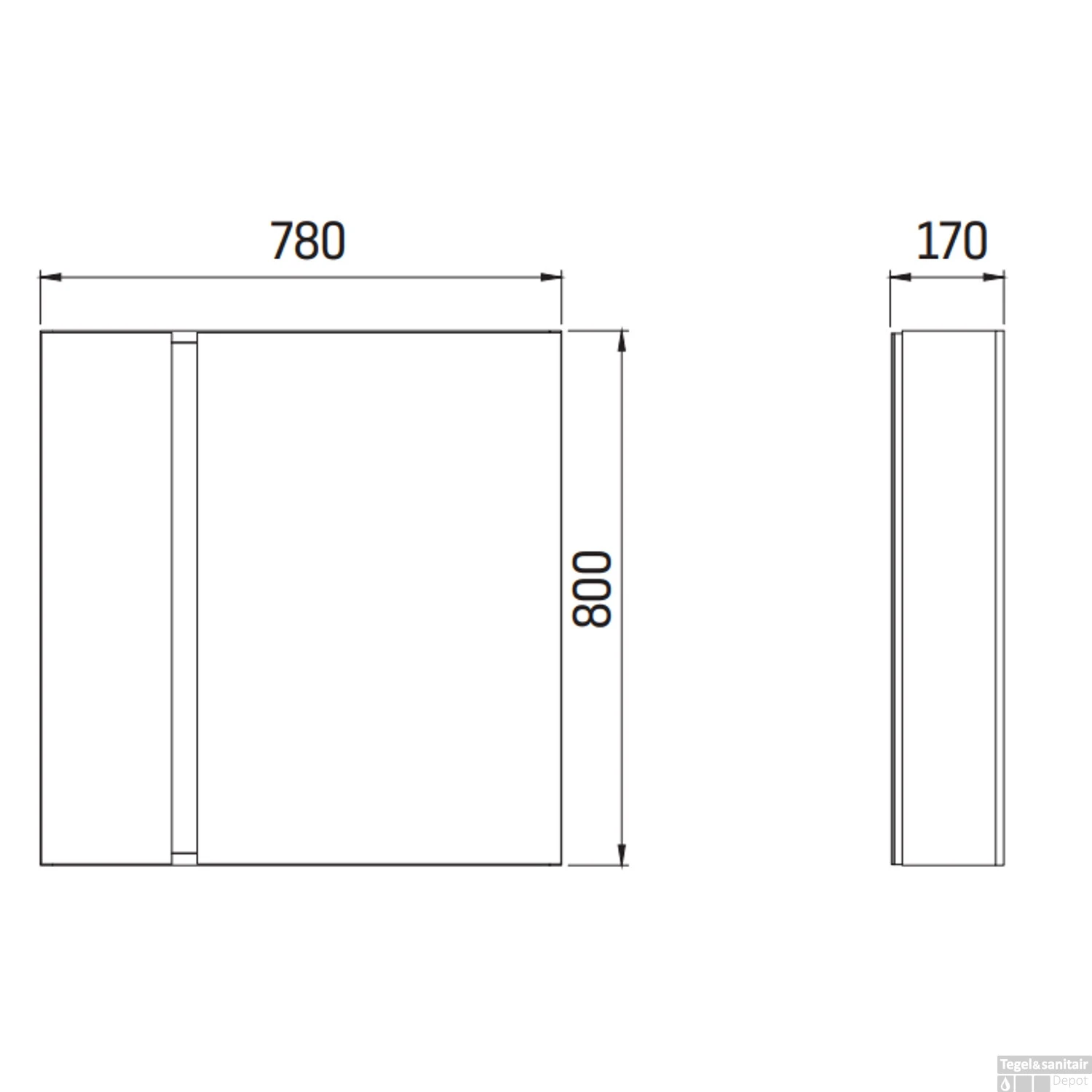 De spiegelkast is 78 cm breed, 80 cm hoog en 17 cm diep.