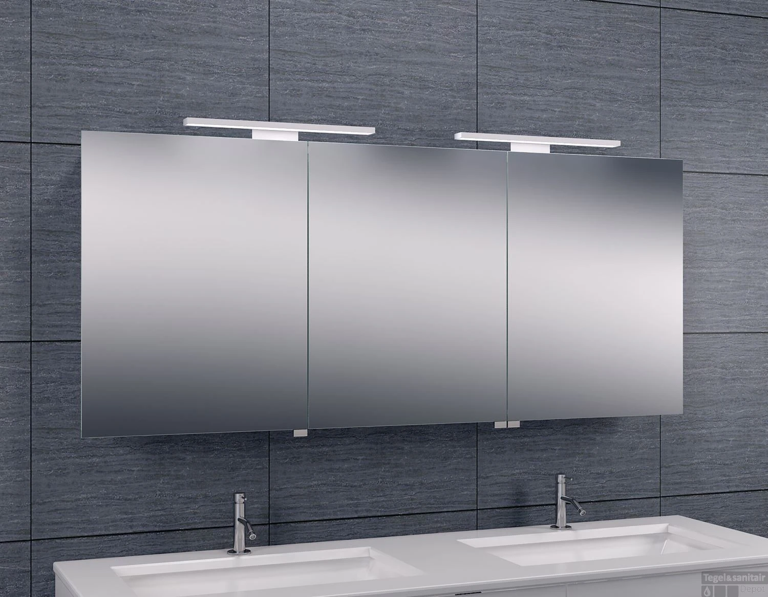 De Luxe Spiegelkast door de Led verlichting is heel zuinig. De karakteristieken van de toegepaste leds in de lamp bepalen samen met de stralingshoek de lichtstroom, lichtsterkte en kleurweergave wat een luxe uitstraling geeft in uw badkamer. Wie wil dat nou niet! De spiegels zitten zowel aan de binnen en buitenkant van de deuren.