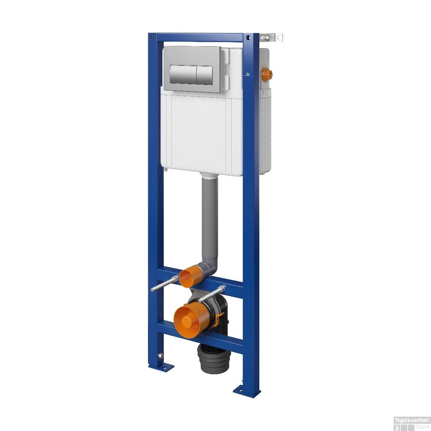 Dit steunframe van Allibert heeft een metalen structuur die gemakkelijk aan de muur en aan de grond kan worden aangepast. Het frame ondersteund een gewicht van maar liefst 400 kg. Het bevat een dubbele bedieningsplaat met een verchroomde drukknop. De afmetingen van het steunframe zijn; 113 cm hoog en 40 cm breed. Fittingen zijn inbegrepen.