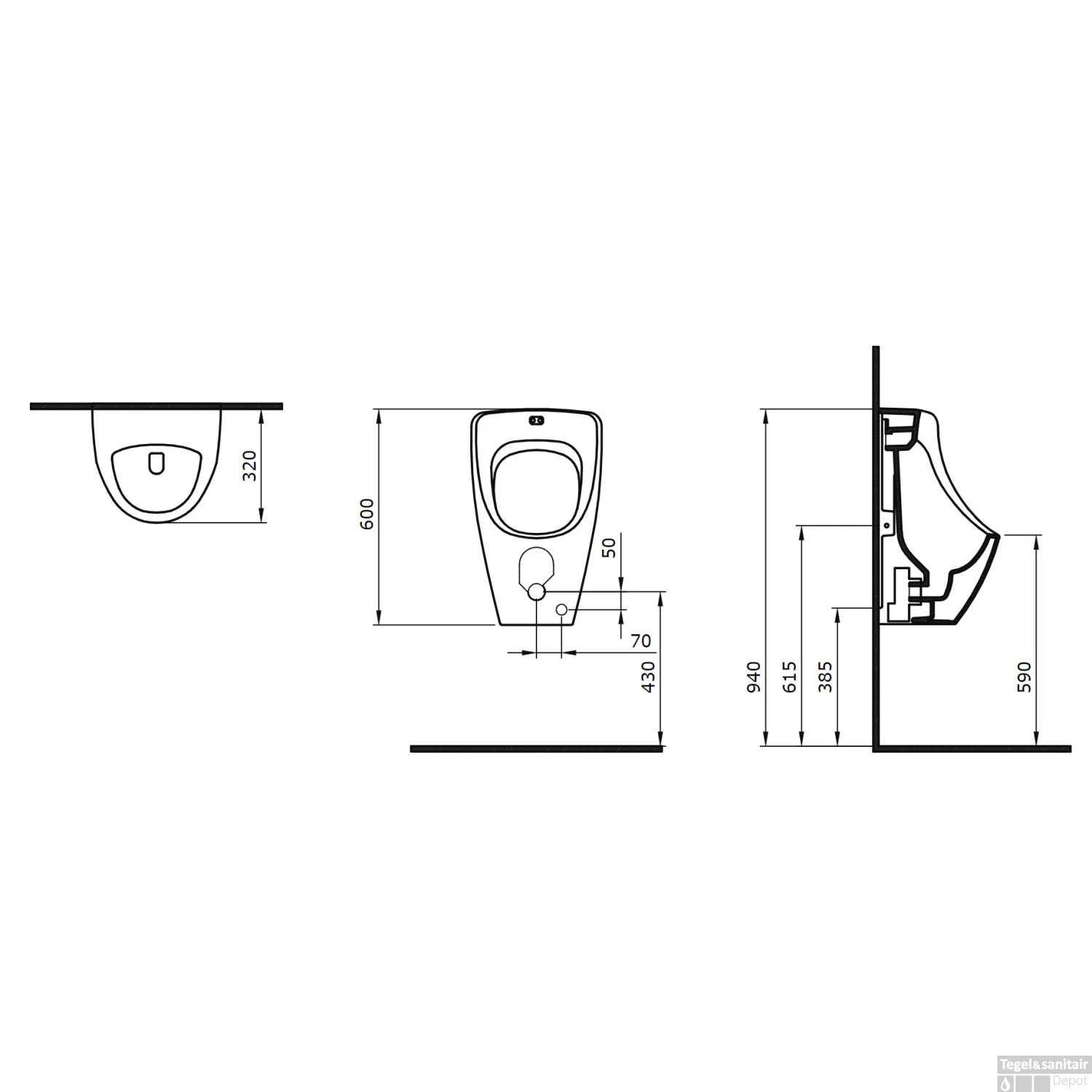 Dit urinoir heeft een spoelwateraansluiting boven. Dit zorgt ervoor dat het mogelijk is om een bedieningspaneel op het inbouwreservoir te plaatsen, waardoor het geheel op een heel nette manier weg te werken valt.