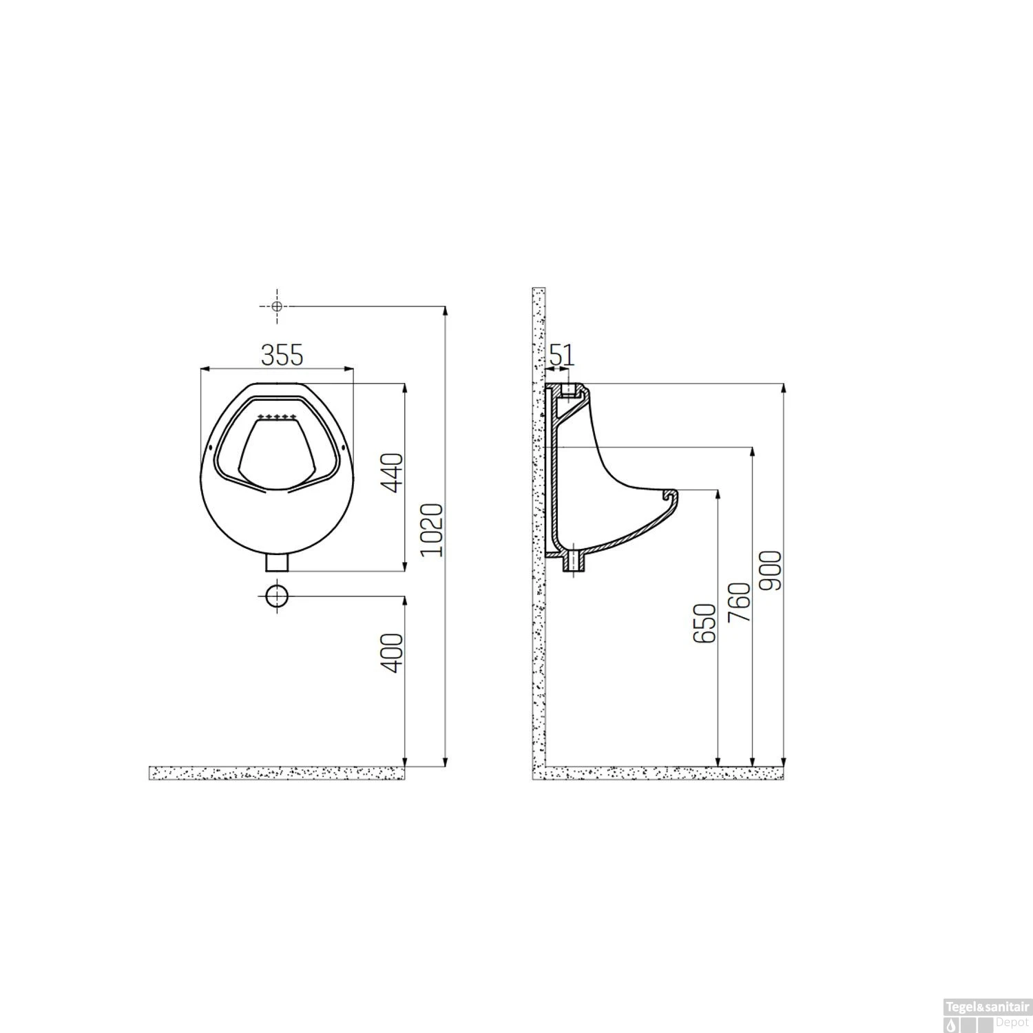 Urinoir Boss & Wessing Costa Met Boveninlaat Keramiek Wit