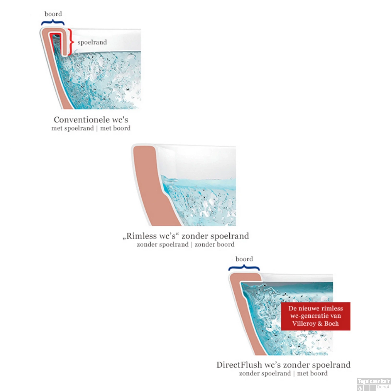 Omdat het wandcloset aan de binnenkant geen spoelrand heeft zal de pot niet snel vies worden en is de pot makkelijker schoon te houden. Bacteriën zullen zich niet meer kunnen nestelen onder de rand en vuil dat u eerder niet zag zal nu niet meer achterblijven in uw toilet.
