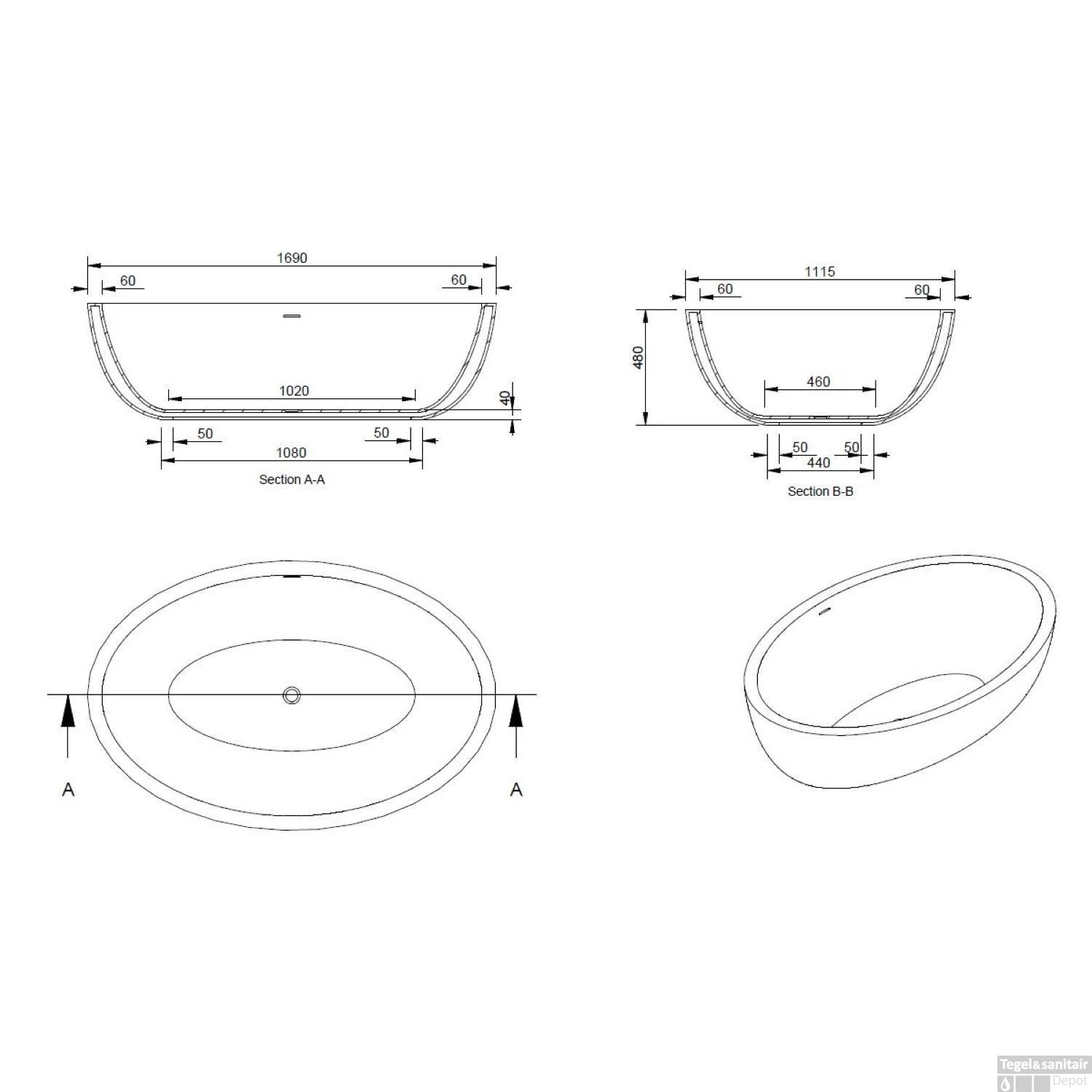 Dit vrijstaande ligbad heeft een mat witte kleur en is 169 cm lang, 111 cm breed en 48 cm hoog. Het oppervlak van het ligbad voelt prettig aan en is makkelijk schoon te maken en te onderhouden.
