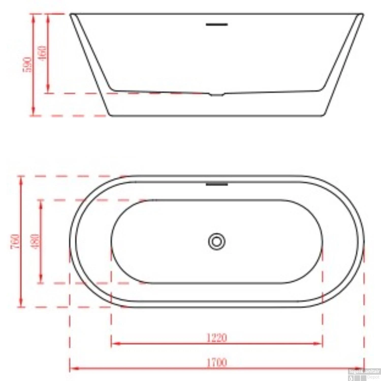 Specificaties Vrijstaand Ligbad Arcqua Colpa 170×76 Acryl Glans Wit: