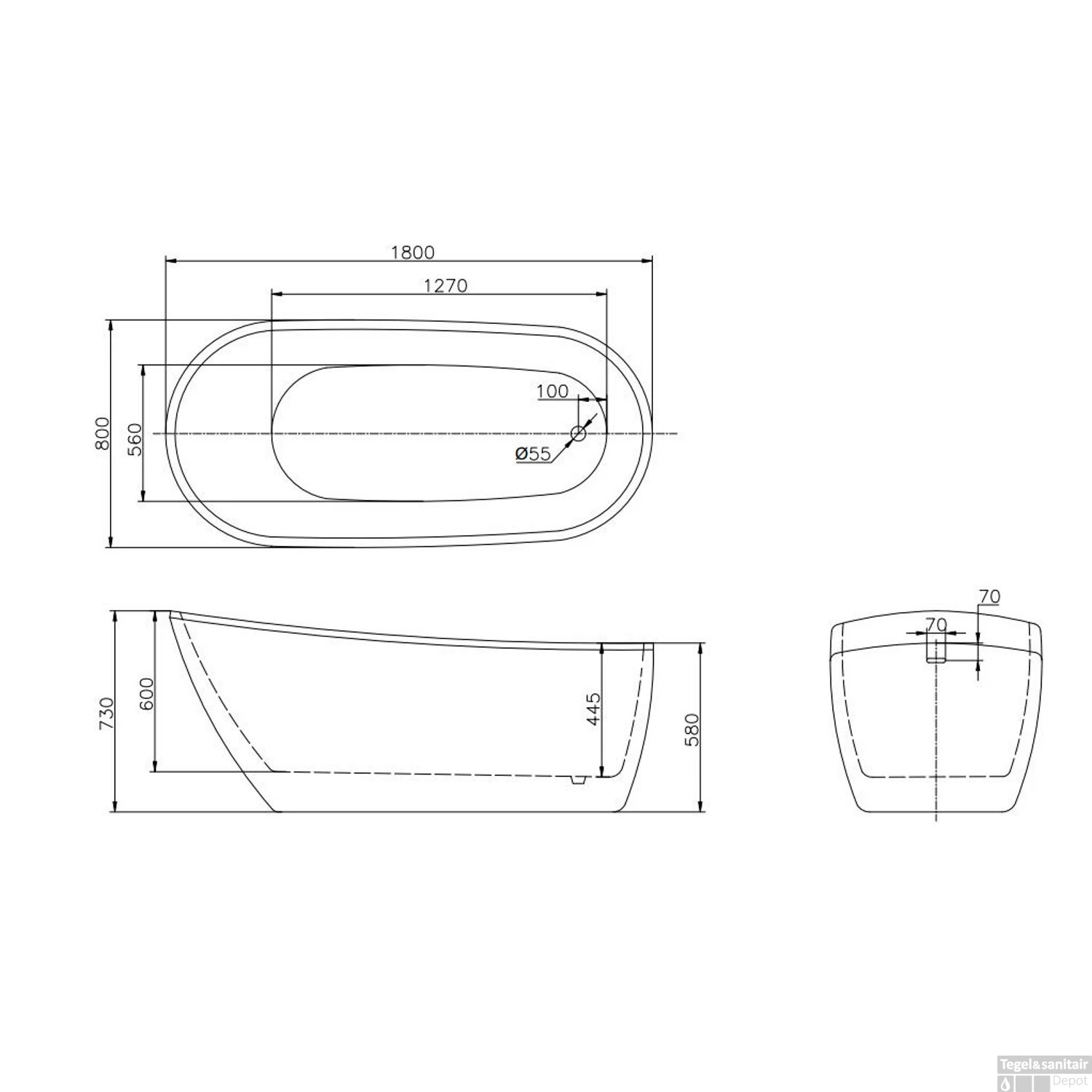 | Diepte bad | 55 – 60 cm |
