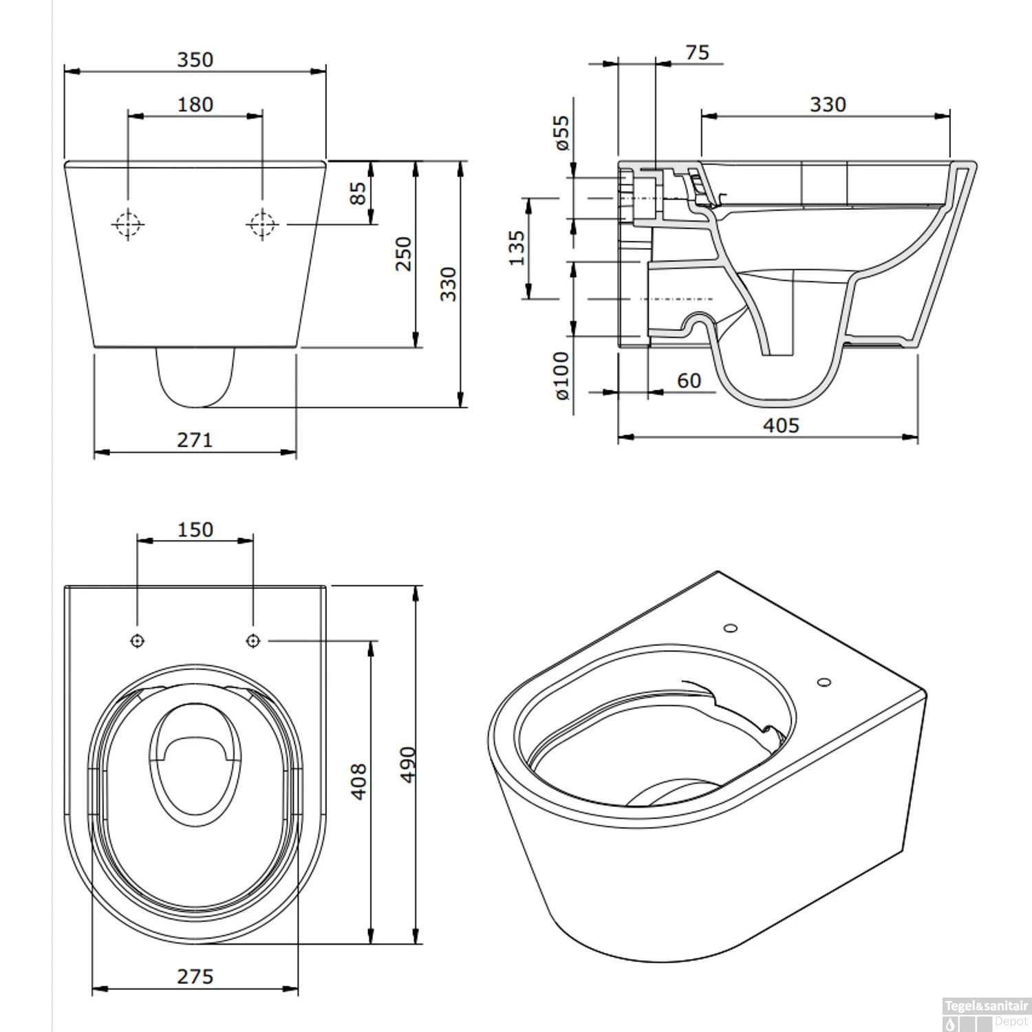 Specificaties Wandcloset Pack BWS Burgos Verkort Rimless 49 cm Wit (Incl. zitting):