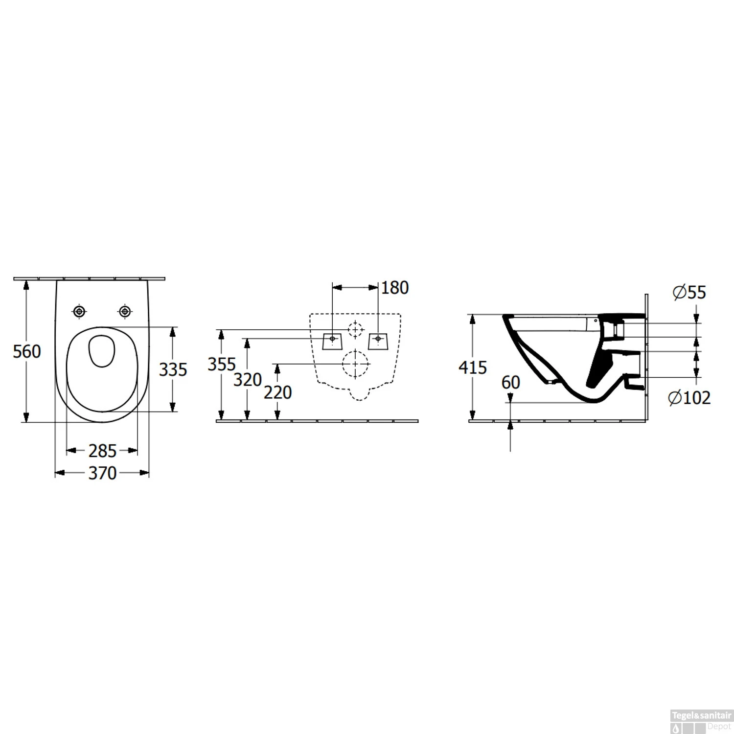 Specificaties Wandcloset Villeroy & Boch Subway 3.0 56x37x36 cm Wit Alpin