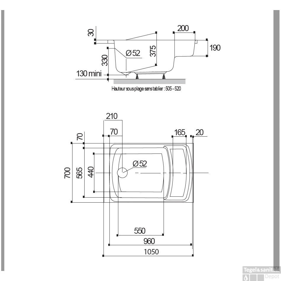 Zitbad Allibert Flavis 105×70 Cm